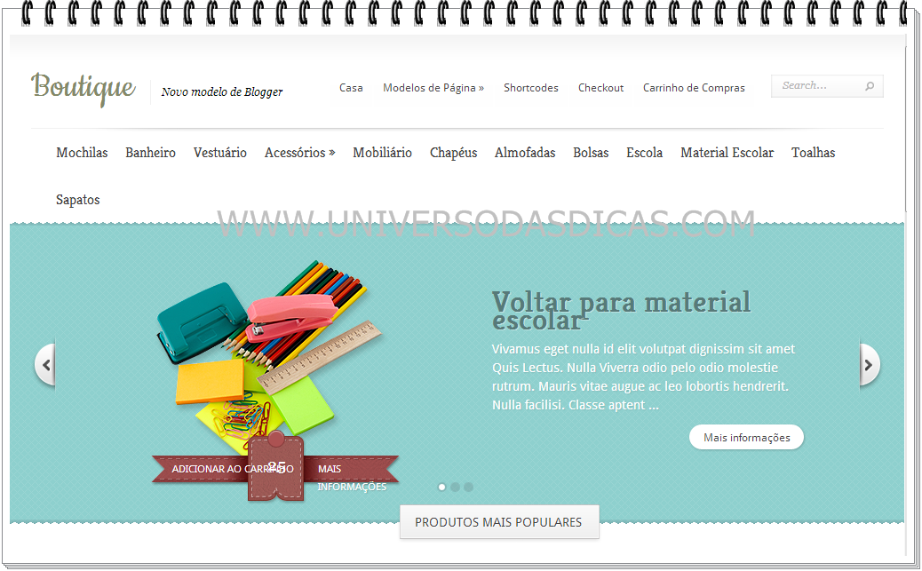 Template para blog de loja virtual grátis
